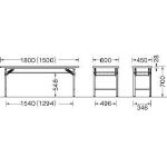●折りたたみ厚:93mm ●天板:木製・メラミン化粧板・共縁・28mm厚 ●脚部:26mm角スチールパイプ・メラミン焼付塗装・アジャスター付 |