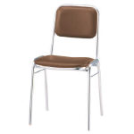 ●スタッキングチェアー ●レザー張り ●上張:ビニールレザー張り ●クッション:ウレタンフォーム ●脚部:φ19mmスチールパイプ・クロームメッキ |