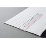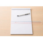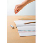 厚紙やデスクマットの端に掛けて簡単に平行線が引けます。また、0発進目盛で端からの長さを簡単に測定できます。