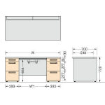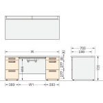 ●天板:スチール・メラミン化粧板・前面ポストフォーム加工・側面ABS樹脂エッジ・30mm・配線カバー(スチール・メラミン焼付塗装(ピュアホワイト)、オレフィン樹脂) ●中央引出し:ラッチ機能付 ●本体:スチール・粉体塗装(ホワイト) ●脚ベース:ABS樹脂カバー・アジャスター付 ●袖引出し:ラッチ機構・オールロック錠(施解錠表示・内筒交換仕様) 下段引出しは転倒防止機構付ロングストローク仕様 ●幕板取付高:床上195mm・220mm ●付属品:ケーブルトレー(XD-036CT-BK)×1個 |