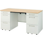 ●天板:スチール・メラミン化粧板・前面ポストフォーム加工・側面ABS樹脂エッジ・30mm・配線カバー(スチール・メラミン焼付塗装(ピュアホワイト)、オレフィン樹脂) ●中央引出し:ラッチ機能付 ●本体:スチール・粉体塗装(ホワイト) ●脚ベース:ABS樹脂カバー・アジャスター付 ●袖引出し:ラッチ機構・オールロック錠(施解錠表示・内筒交換仕様) 下段引出しは転倒防止機構付ロングストローク仕様 ●幕板取付高:床上195mm・220mm ●付属品:ケーブルトレー(XD-036CT-BK)×1個 |