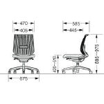 ●背:PP樹脂成型品 ●座:PP樹脂成型品 ●座クッション:張材(ポリエステル)、モールドウレタン ●脚部:アルミダイキャスト ●キャスター:φ60mmナイロン双輪 ※ セルフアジャストロッキング機構(フロントストッパー付) |