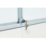 スライドするホワイトボードを施錠でき、収納物の露出を防ぎます。