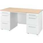 ●天板:スチール・メラミン化粧板・前後面ポストフォーム加工・側面ABS樹脂エッジ・29mm厚・コードホール付(2ヵ所) ●中央引出し:ラッチ機能付 ●本体:スチール粉体塗装(ホワイト) ●脚ベース:ABS樹脂カバー・アジャスター付 ●配線ボックス取付可能 ●幕板取付高:110mm・140mm ●引出し:オールロック錠(施解錠表示・内筒交換仕様) |