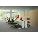 ●天板:スチール・メラミン化粧板・前後面ポストフォーム加工・側面ABS樹脂エッジ・29mm厚・コードホール付(2ヵ所) ●本体:スチール粉体塗装(ホワイト) ●脚ベース:ABS樹脂カバー・アジャスター付 ●配線ボックス取付可能 ●幕板取付高:110mm・140mm |