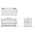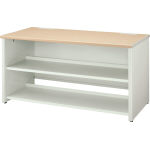 ●天板:スチール・メラミン化粧板・前後面ポストフォーム加工・側面ABS樹脂エッジ・29mm厚・コードホール付(2ヵ所) ●本体:スチール・粉体塗装(ホワイト)・アジャスター付 ●棚板:スチール・粉体塗装(ホワイト) ●幕板取付高:床上140mm |