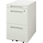 ●天板:樹脂成型天板(ホワイト) ●本体:スチール・粉体塗装(ホワイト)・ストッパー付低床自在キャスター仕様 ●取っ手:ABS樹脂 ●引出し:ラッチ機構・オールロック錠(施解錠表示・内筒交換仕様)・下段引出しは転倒防止機構付 ●引出し内寸法:上段/W320×D432×H35mm 中段/W320×D557×H271mm 下段/W320×D557×H271mm ●付属品:ペントレー ×1個(LT-A-10)・横仕切板 ×2枚(LT-B-10) |
