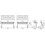 ●天板:木製・メラミン化粧板・20mm厚・ソフトエッジ(2色成形) ●脚部支柱: 60×30mmスチールパイプ・メラミン焼付塗装(シルバー) ●脚部ベース: アルミダイキャスト・アクリル焼付塗装(シルバー)・φ60mmウレタン双輪キャスター4個(2個ストッパー付)・アジャスト機構(調整幅: 約13mm) ●棚: スチール丸パイプ・メラミン焼付塗装(ブラック) ●折りたたみ機構: 天板跳ね上げ式 ●幕板:PVC樹脂成形品 ●電源・情報ユニット(電源:15A-125V・2mコード付×1/情報:RJ45対応・CAT5E仕様×1) ※W1800は3箇所天板に取り付けられています。 |