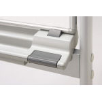 ●板面仕様:白(暗線入)・白 ●板面回転式・ワンタッチストッパー ●フレーム:アルミ・アルマイト仕上(シルバー)●脚:スチール楕円パイプ・粉体塗装(シルバー)・φ50mmナイロン双輪キャスター4個(2個ストッパー付) ●付属品:イレーザー(CE-203)、マーカー(WH-51:赤・青・黒各1本) |