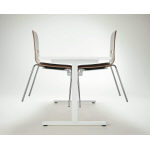 イスを掛けることができるハンギングフレームを装備。床の清掃時にイスが邪魔にならず、天板にイスをのせる必要がないので衛生的です。