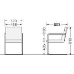 ●上張:布張り(ポリエステル) ●クッション:ウレタンフォーム(座・布バネ構造) ●肘:ABS樹脂成型品 ●脚部:φ22.2mmスチールパイプ・クロームメッキ |