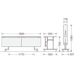 ●キャスター:φ65mm ●天板厚:30mm ●天板:木製・メラミン化粧板・裏面バッカー ●脚部:25mm角スチールパイプ・メラミン焼付塗装・キャスター4個(2個ストッパー付)●幕板:木製・メラミン化粧板・17mm厚 |
