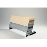 ●天板:木製・メラミン化粧板・ABS樹脂エッジ・20.5mm厚 ● 脚部:スチール・メラミン焼付塗装(シルバー) ●棚:スチール丸パイプ・メラミン焼付塗装(シルバー) ●φ50mmナイロン双輪キャスター4個(2個ストッパー付)・アジャスト機構(調整幅:約8mm) ●折りたたみ機構:天板跳ね上げ式 |