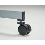 アジャスター機能をもった直径50mmキャスター。キャスター上部のアジャスターで高さを微調整できます(調整幅:約8mm)。床の凹凸による天板高の段差を解消できます。