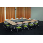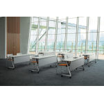 左右から出入りしやすい脚形状のフラップテーブル。脚間はゆとりの1720mm。