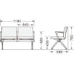 54034 ロビーチェアー〈レクタス〉 背付・中間肘付 布張り 2連 43LC-52F イエローグリーン