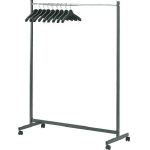 ●スチールパイプ・メラミン焼付塗装 ●φ50mmナイロン双輪キャスター(2個ストッパー付) ●ハンガー15個付 |