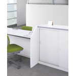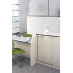 ホワイト&木目のカラーリングで、さわやかな空間を演出するビジネスカウンター。 |