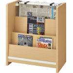 ●天板:木製・メラミン化粧板(ホワイト)・ポストフォーム仕上・30mm厚 ●本体:木製・ポリエステル化粧板(木目調) ●棚板:木製・ポリエステル化粧板(ホワイト)・ソフトエッジ貼り ●アジャスター付 ●新聞挟(No.5 別売)3本収容可 |