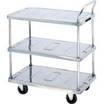 ●ステンレス製 ●形式:3段式 ●荷台寸法:W450×710mm ●最大積載量:150kg ●キャスター:φ100mm・ゴム製 |