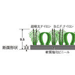 ●表面:ナイロン ●裏面:PVC ●厚さ:約9.5mm ●質量:1m2あたり約3.1kg ●防炎試験登録番号E0900574 |