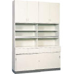 上部棚Aタイプ(ガラス引戸・鍵付)+下部収納庫bタイプ(引出し/引戸・鍵付) |