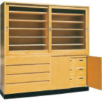 ●本体:木製・ポリエステル化粧板(オーク柄) ●棚板:ラワン合板 ●台輪:木製・ポリエステル化粧板 ●引出し:12個+両開扉内9個 |