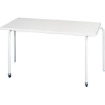 ●長方形型 ●天板:木製・メラミン化粧板(ライトグレー)・30mm厚・ソフトエッジ ●脚部: φ28.6mmスチールパイプ・メラミン焼付塗装(後脚アジャスター付、前脚φ40mmゴム単輪キャスター付) |