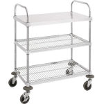 ●棚板:ステンレス(SUS304)ソリッド棚×1・ワイヤー棚×2 ●460×740mm棚板タイプ ●キャスター:φ100mゴム ●総耐荷重:200kg ●ワイヤー棚耐荷重:200kg ●ソリッド棚耐荷重:150kg |
