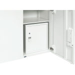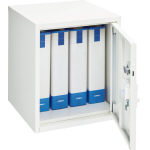 ●W350×D350×H400mm・8.1kg ●内寸法:316×D318×H333mm ●ダブルロック機能(シリンダー錠・ダイヤル錠) ●棚板1枚付 ●本体:メラミン焼付塗装(ホワイト) |