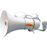 ●非防水タイプ ●音声400m・ホイッスル500m ●ショルダータイプ ●質量(電池別):1.1kg ●サイズ:φ210×D320×H210mm ●肩掛けバンド(長さ約950mm) ●電池持続時間(JEITA):約13時間(音声時)/約110分(ホイッスル時) ●電源:単2乾電池6本 ●定格出力:13W ●材質:ABS樹脂 |