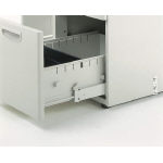 ●ワゴン(キャスター付) ●天板:樹脂成形天板(ライトグレー) ●本体:スチール・粉体塗装(ライトグレー)・キャスター仕様 ●付属品:横仕切板PS-14-BK 2枚 ●引出し内寸法:上・下段/W317×D540×H265mm(ダブルサスペンションレール) |