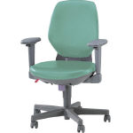●フレキシブルアームタイプ ●ハイバック ●上張:ポリオレフィン系レザー張り ●クッション:座モールドウレタン背:ペットボトル再生フェルト ●肘部:PP樹脂成型品 ●肘上下調節可能(最大80mm・16mmピッチ5段階) ●肘前後スライド可能(最大30mm・無段階) ●肘左右スライド可能(最大26mm・無段階) ●肘左右角度調節可能(最大40度・無段階) ●脚部:スチール製・PP樹脂成型カバー付 ●キャスター:ナイロン双輪 ●ロッキング強弱調節可能 ●ロッキングストッパー付 ●背部上下調節可能45mm |