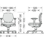 ●フレキシブルアームタイプ ●ローバック ●上張:再生ポリエステル ●クッション:座モールドウレタン背:ペットボトル再生フェルト ●肘部:PP樹脂成型品 ●肘上下調節可能(最大80mm・16mmピッチ5段階) ●肘前後スライド可能(最大30mm・無段階) ●肘左右スライド可能(最大26mm・無段階) ●肘左右角度調節可能(最大40度・無段階) ●脚部:スチール製・PP樹脂成型カバー付 ●キャスター:ナイロン双輪 ●ロッキング強弱調節可能 ●ロッキングストッパー付 ●背部上下調節可能45mm |