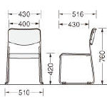 ●上張:ビニールレザー張り(抗菌・防汚) ●背:PP樹脂成型品・ウレタンフォーム ●座:PP樹脂成型品・ウレタンフォーム ●脚部: φ12.7mmハイテンションスチールパイプ・粉体塗装 ●平積み積載数:8脚 |