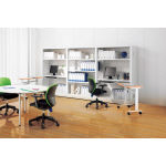 ●棚板:3枚 ●天板:配線グロメット2個付 ●棚板:50mmピッチで可動 ●脚部:アジャスター仕様 ●配線収納機構付 ●左右連結可能 |