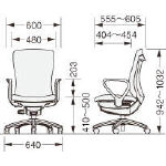 座面右下(中央)の調節ツマミの操作により、背のロッキング反力の強弱を簡単に調節できます。座面右下(前方)のレバーを持ちあげると座面の高さが調整できます。(ストローク:90mm)