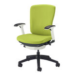 座の傾斜スライドと連動しながら背が後傾するスライド3WAYシンクロロッキング機構により、座前部の持ち上がりがなく、骨盤と大腿部の角度を最良に保つことができます(背最大傾斜角20°)。背のラインにフィットする、ランバーサポート形状の背もたれが、腰椎を支え腰への負担を軽減します。