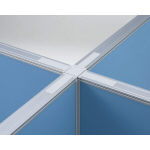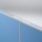 【ワンタッチ連結[下部]】パネル上部のカバーをはずし、連結フックを溝に落とし込み、もう一方のパネルを引っ掛けます。