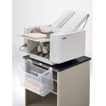 【省スペース排紙】紙折機を設置台の端に置き、排紙テーブルを外すことで、用紙が落下し、省スペースでご使用いただけます。
