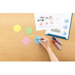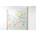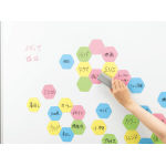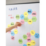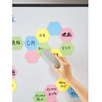 ブレインストーミングができる、ホワイトボード加工の六角マグネットシート。 |