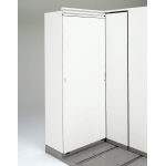後列のオープン型書庫にフルオープンドアを取り付けると、扉が書庫の幅いっぱいに開口し、収納物の出し入れに便利です。 |