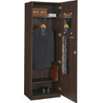 ●上棚:固定棚1枚(ハンガー付) ●下棚:固定棚1枚 ●付属品:ミラー・ネクタイ掛 ●錠付 ●アジャスター付 ●扉:木製・プリント化粧板 ●本体:木製・プリント化粧板 |