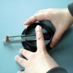 ホルダーに再生樹脂100%を使用した薄物用円切りカッター。 |
