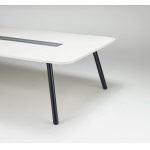 【開閉式配線カバー】テーブル中央の開閉式配線カバーにより任意の位置で天板からケーブルを落とし込むことができます。