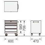 ●引出し:H150mm×2個、H75mm×2個 ●引出し内寸法:W483×D406×H146mm、68mm ●本体:スチール・粉体塗装 ●最大積載質量(引出し1段あたり):等分布荷重で30kg ●キャスター付(前2輪ストッパー付) ●キャスターの耐荷重:100kg/個 ●シリンダー錠(開錠インジケーター付)・オールロック(子カギ2本付) ●ダブルサスペンションレール ●ラッチ付 |