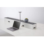 ●天板:スチール・メラミン化粧板・26mm厚・ABS樹脂エッジ ●フレーム:スチール・粉体塗装(ブラック)/アルミ押出し(アルマイト仕上) ●センター脚:スチール・粉体塗装(ブラック)・アジャスター付 ●机上ボックス:スチール・粉体塗装(ホワイト・ブラック)フェルト張り ●配線トレー:スチール・粉体塗装(ブラック) ●電源:コンセント2口(125V・15A・1500Wまで)×10個(W4200)/6個(W2600)・コード長さ2m |