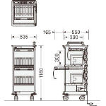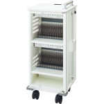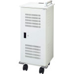 ●収納台数:24台 ●本体:スチール製(粉体塗装) ●φ100mm双輪キャスター4個(前輪ストッパー付) ●床固定金具2個付 ●前扉270度開閉可能 ●マグネットキャッチ付 ●シリンダー錠(鍵2枚付) ●電源:タイマー付タップ ●OAタップ6本付 ●定格:15A 100V 1500Wまで ●端末収納部1箇所あたり有効寸法:W30×D390×H300mm |