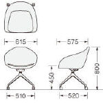 ●張材:布張り(ポリエステル) ●クッション:ウレタンフォーム ●脚部:4本脚タイプ…φ25.4mmスチールパイプ・粉体塗装(ホワイト・ブラック)、キャスター付クロス脚タイプ…アルミダイキャスト・粉体塗装(ホワイト・ブラック) ●キャスター:φ50mmナイロン双輪 |