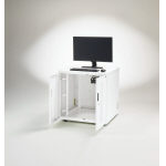 ●カギ付(前面開扉・背面パネル) ●天板:木製・メラミン化粧板(ホワイト)・ABS樹脂エッジ・20mm厚・配線用グロメット1個付 ●本体:スチール・粉体塗装(ホワイト)EIA19インチラックマウントアングル(取付ユニット数:13U)配線用グロメット付(両側計2箇所)・底板配線引込口付(470×50mm) ●キャスター・アジャスター付 ●ファン2個付(背面パネル) ●ケーブルホルダー付 |
